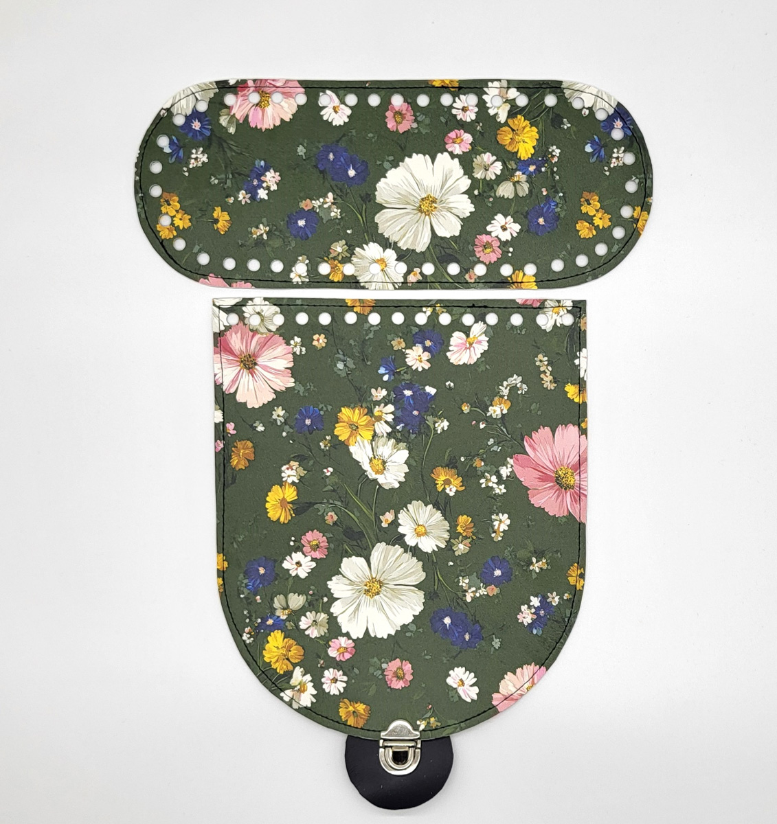 44. Táskafedél + alj – Virágok zöld alapon
